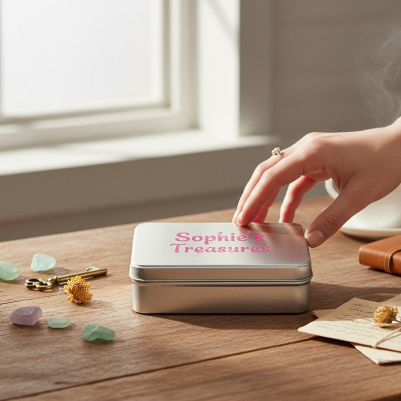 Keep your badges safe and sound in this personalised badge tin! Perfect for kids bringing home treasures from scouts, guides, gym class, swimming awards etc, it’s the ideal spot to stash badges waiting to be sewn on uniforms or blankets—or waiting patiently for granny’s magical sewing touch.